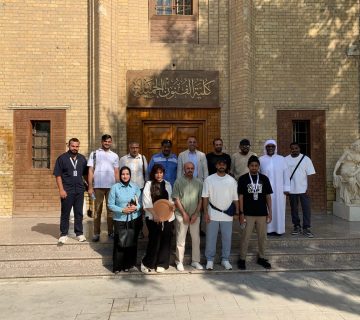 برعاية السيد عميد كلية الفنون الجميلة الدكتور مضاد عجيل وبأشراف السيد رئيس قسم الخط والزخرفة الدكتور كفاح جمعة ، اقام قسم الخط العربي والزخرفة المعرض السنوي الخاص بالنتاجات العلمية وسط حضور كبير من قبل اساتذة وطلبة القسم وجمع كبير من الخطاطين العراقيين والمتذوقين لفنون الخط العربي والزخرفة ، واعرب السيد رئيس قسم الخط عن شكرة الجزيل لعمادة الكلية لما تقدمة من دعم كبير في اقامة المعرض بصورة جميلة ، كما وعبر العديد من الخطاطين الذين تواجدو في المعرض عن اعجابهم بلاعمال التي قدمت من قبل الطلبة والتي امتازت بتعدد الاساليب والدقة العالية في التنفيذ والابداع